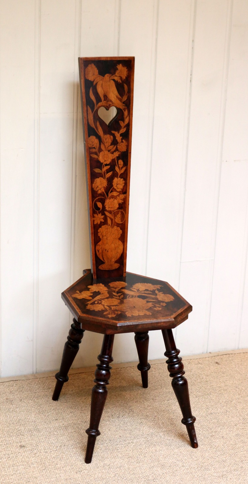 Ornate Pokerwork Spinning Chair c.1900