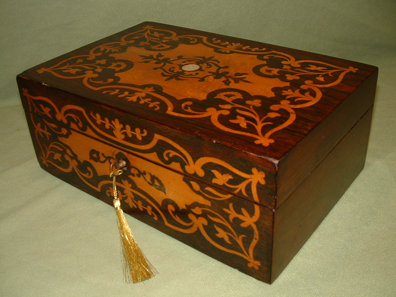 Ornate Rosewood & Satinwood Jewellery - Table Box c.1870