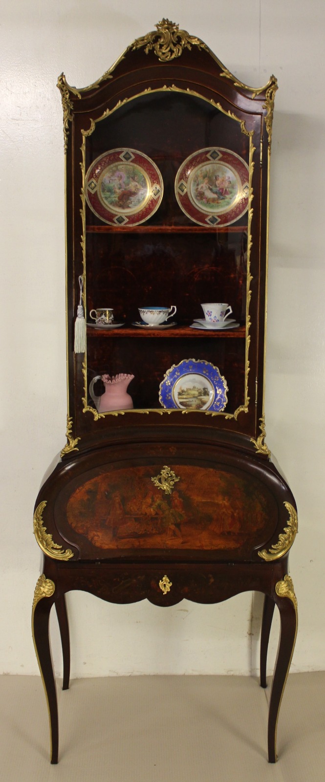Ornate Vernis Martin Decorated Vitrine Bureau (1 of 1)