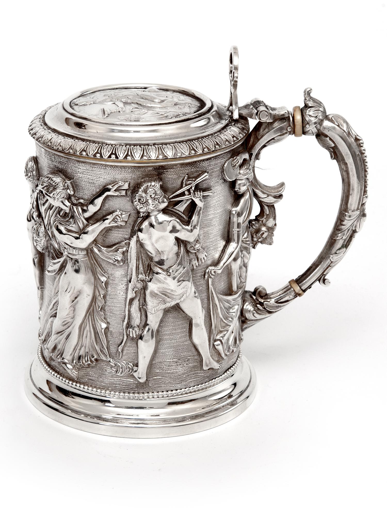 Ornate Victorian Electro Formed Silver Plated Lidded Tankard with Figural Scenes of Musicians (1 of 13)
