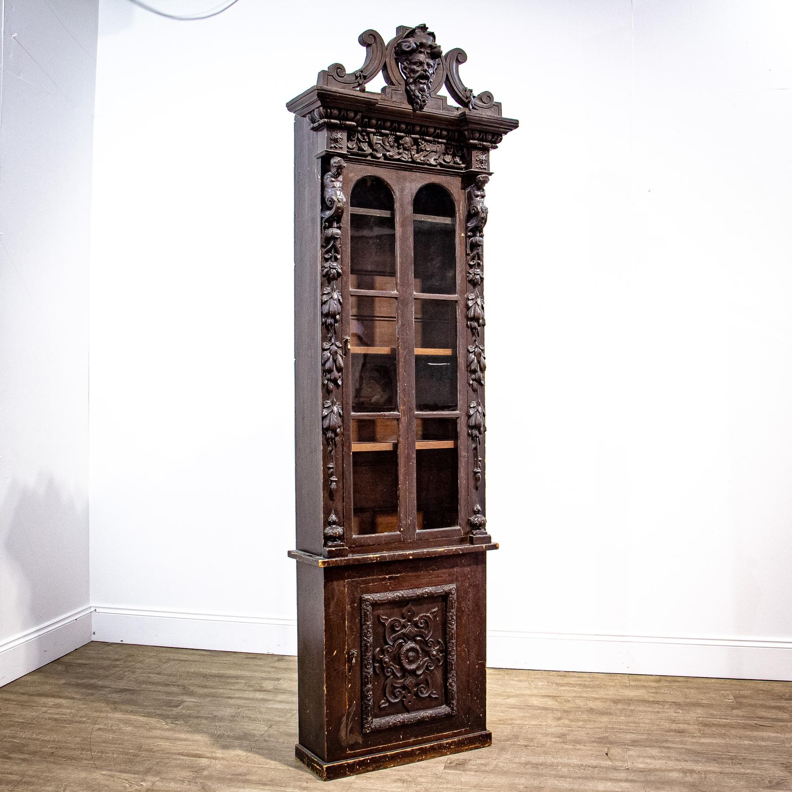Ornate Victorian Narrow Pine Bookcase or Display