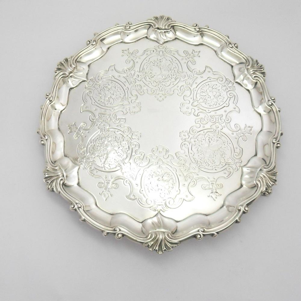 Ornate Victorian Silver Card Tray Hallmarked London 1857
