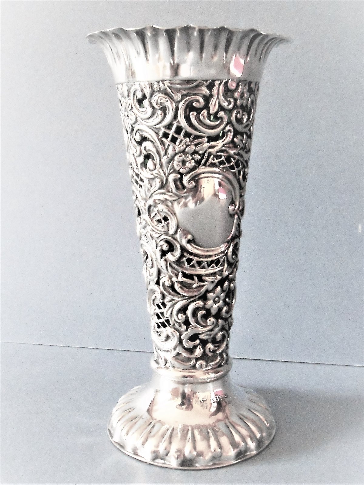 Ornate Victorian Solid Silver Vase 1899