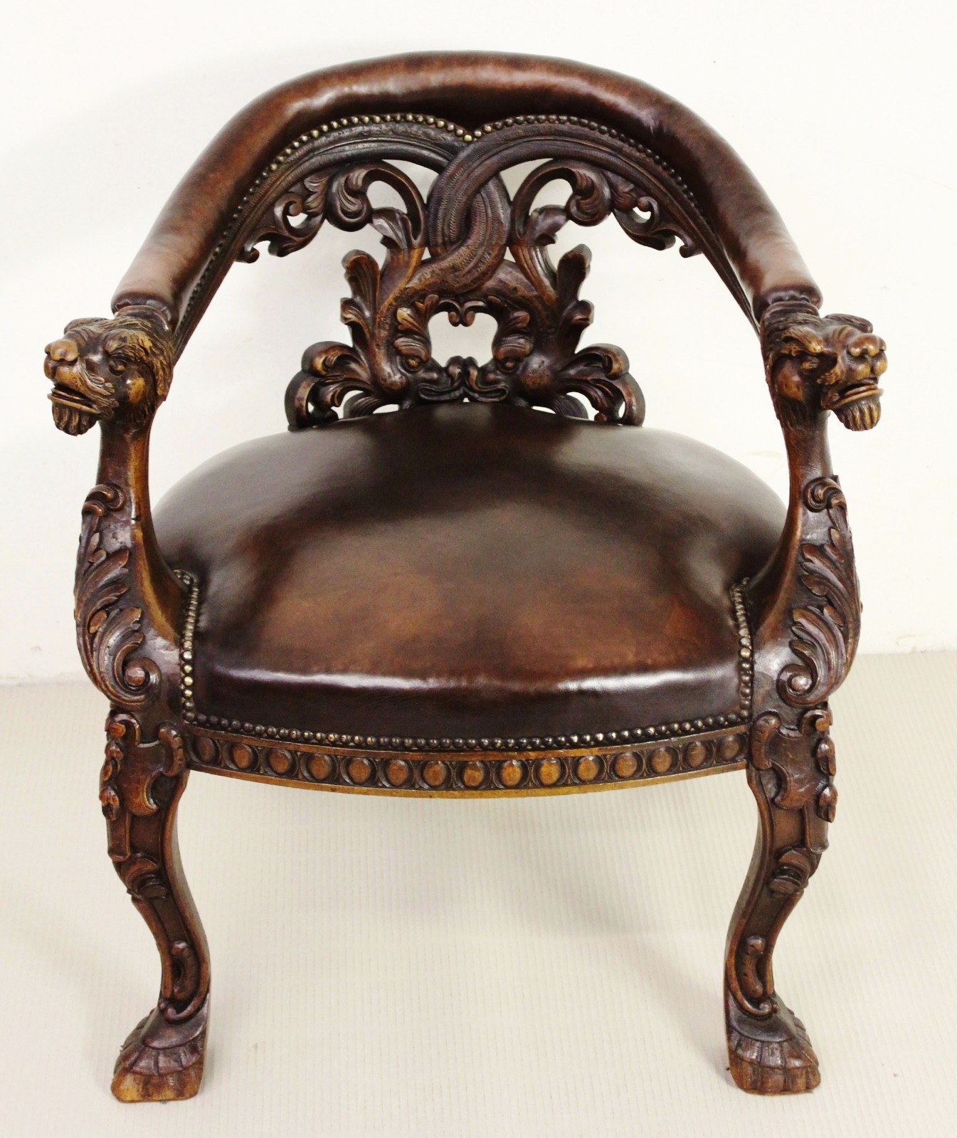 Ornate Walnut & Leather Captains Desk Chair