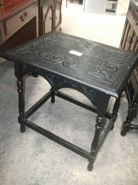 Ornately Carved Ebonised Oak Occasional Table