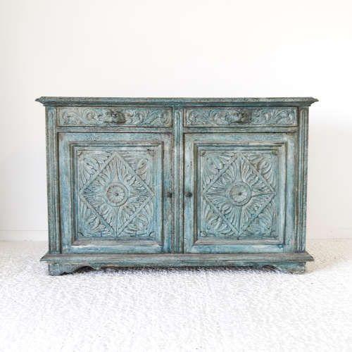 Ornately Carved Oak Sideboard Cupboard 2 Doors & 2 Drawers Later Painted