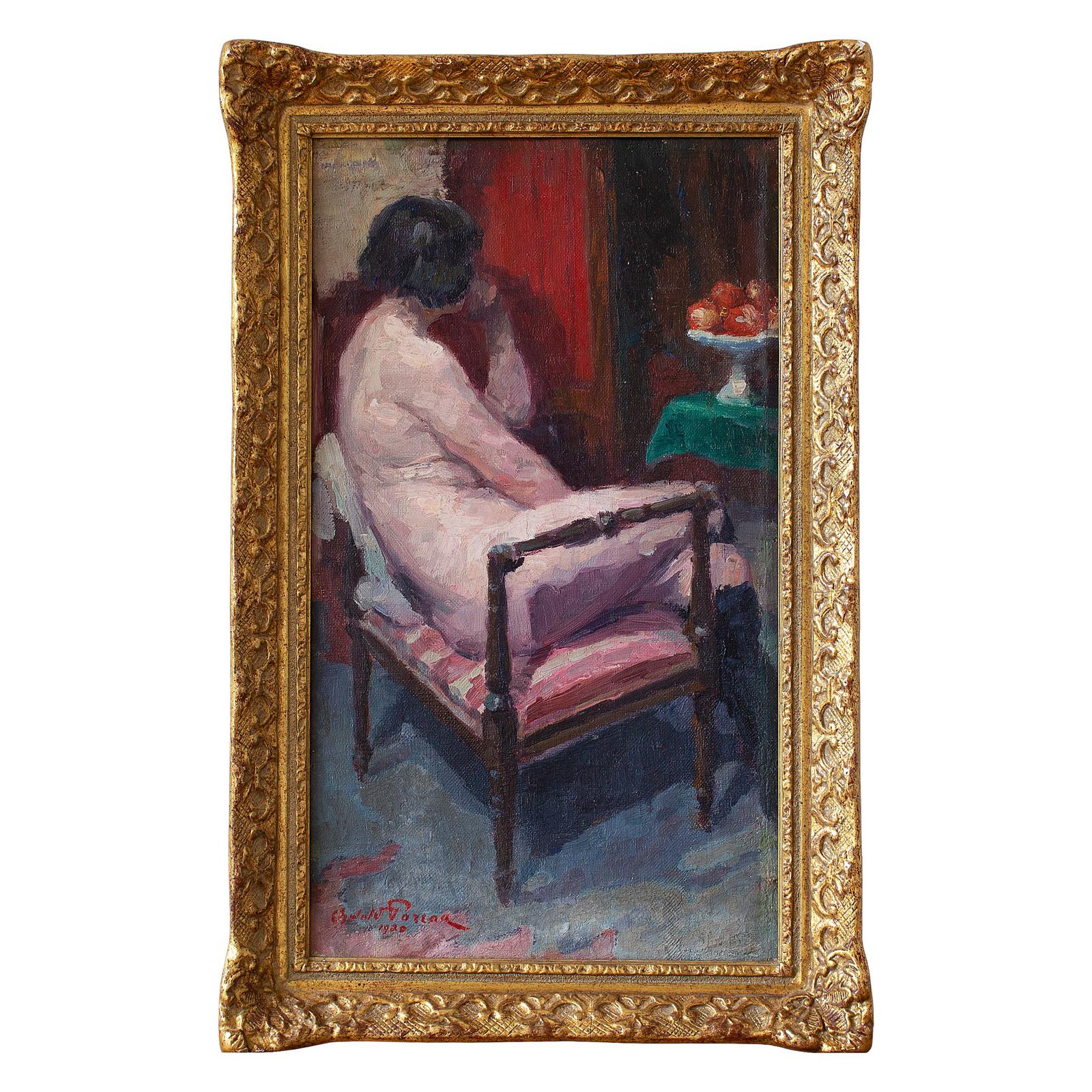Oswald Poreau, Seated Nude In Leather Boots, Oil Painting