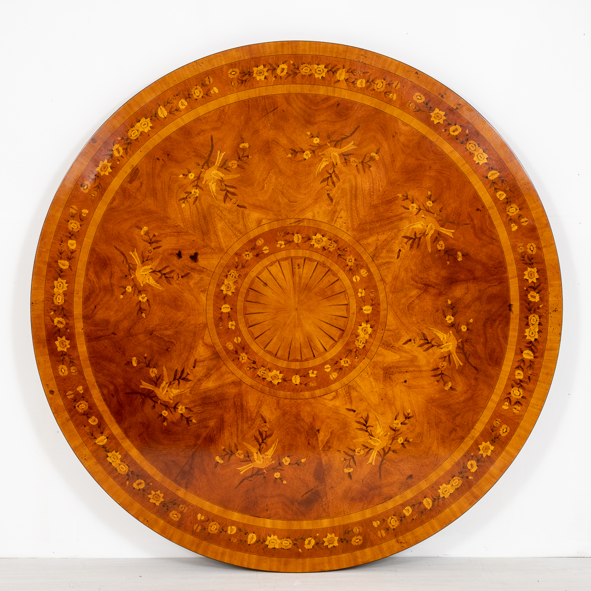 Outstanding 6ft Diameter Mahogany Marquetry Dining Table