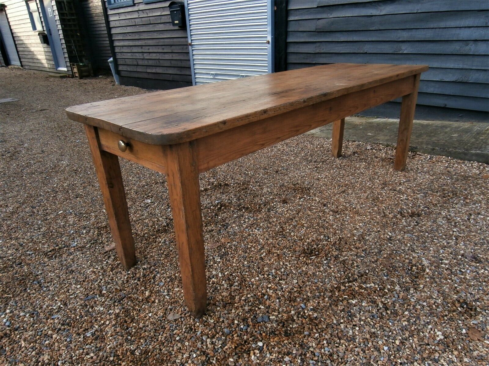 Outstanding 7Ft 19th Century Pine Plank Top Dining Kitchen Table