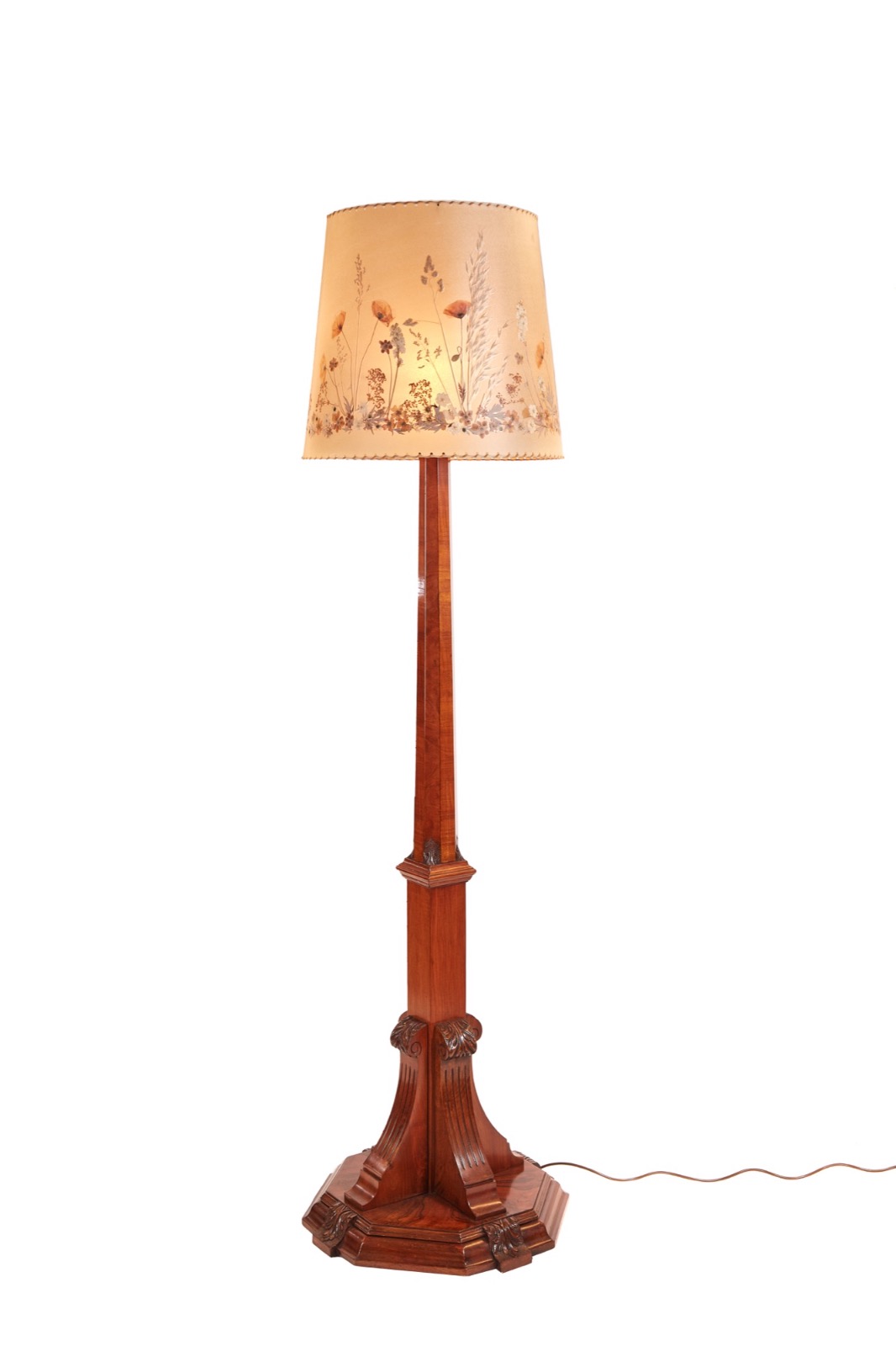 Outstanding Carved Walnut Standard Lamp & Shade c.1920