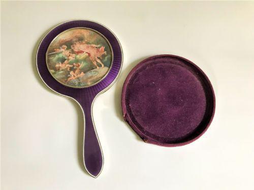 Outstanding French Silver & Guilloche Enamel Hand Mirror (1 of 9)