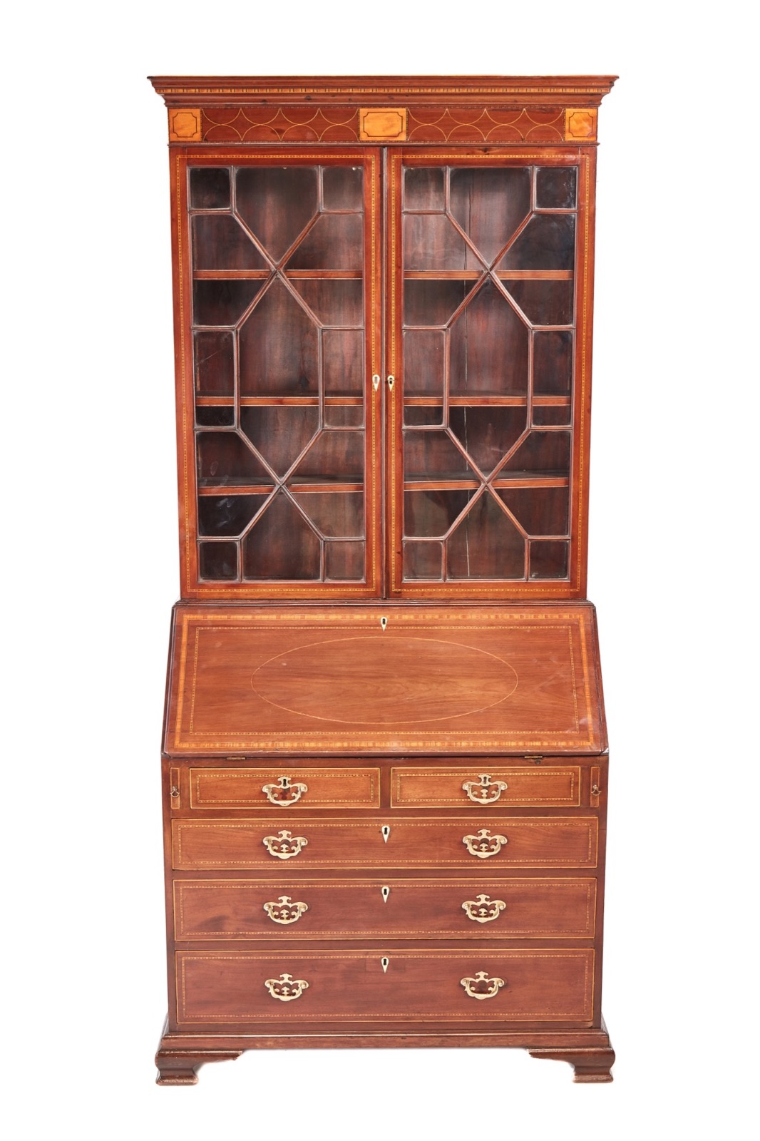 Outstanding George III Inlaid Mahogany Bureau Bookcase