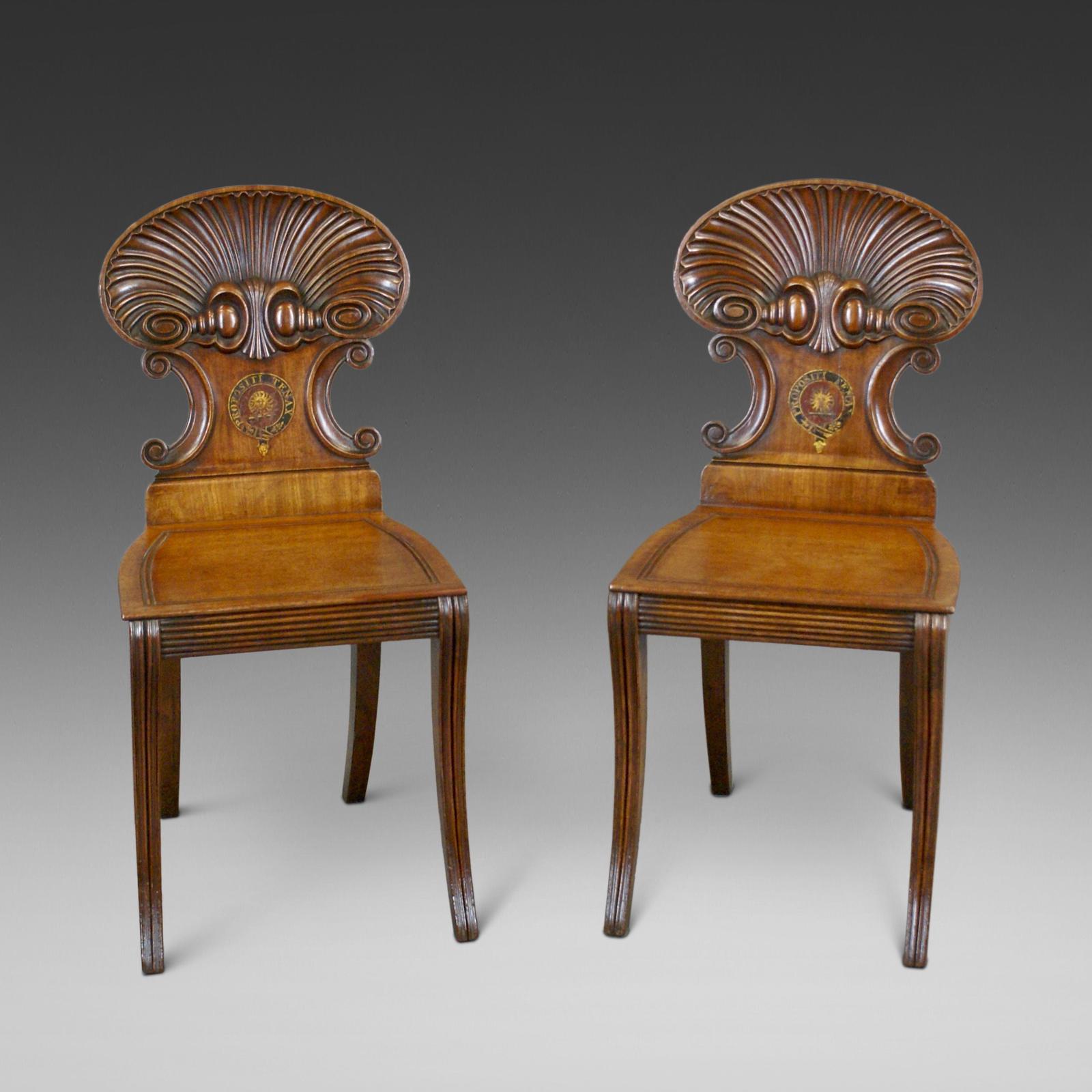 Outstanding Pair of Gillows Shell Back Hall Chairs