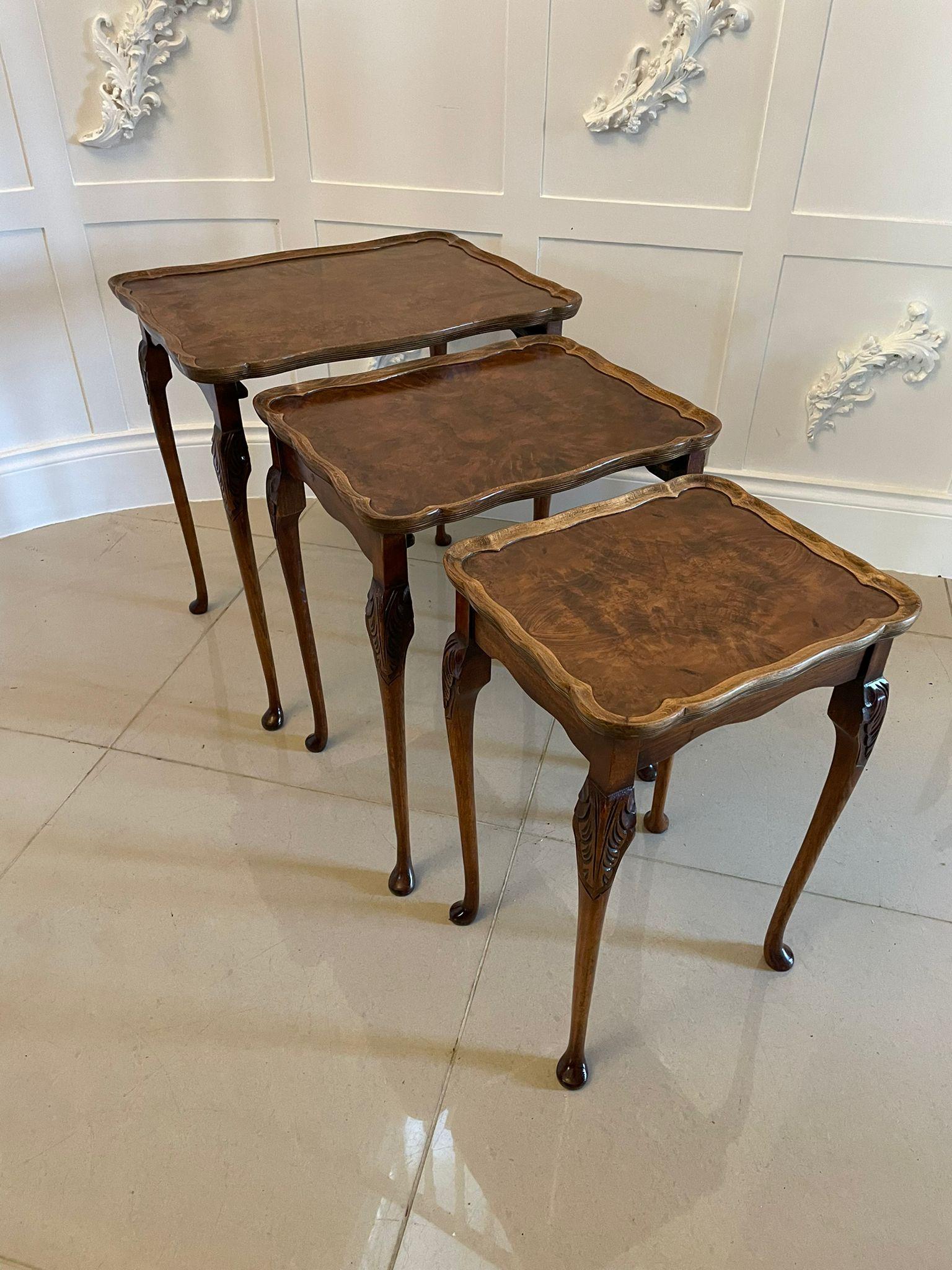 Outstanding Quality Antique Burr Walnut Nest of 3 Tables