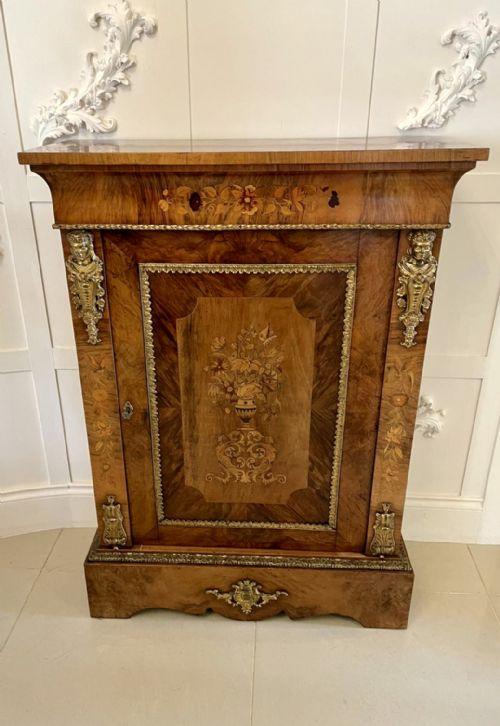 Outstanding Quality Antique Victorian Burr Walnut Floral Marquetry Inlaid Side Cabinet