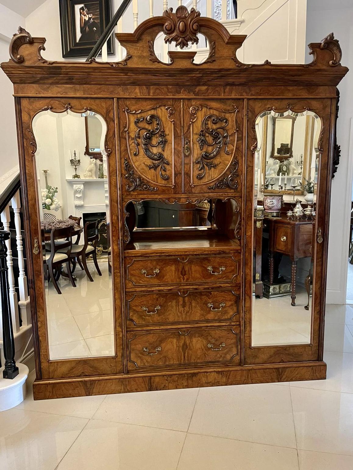 Outstanding Quality Large Antique Victorian Burr Walnut & Olive Wood Carved Wardrobe