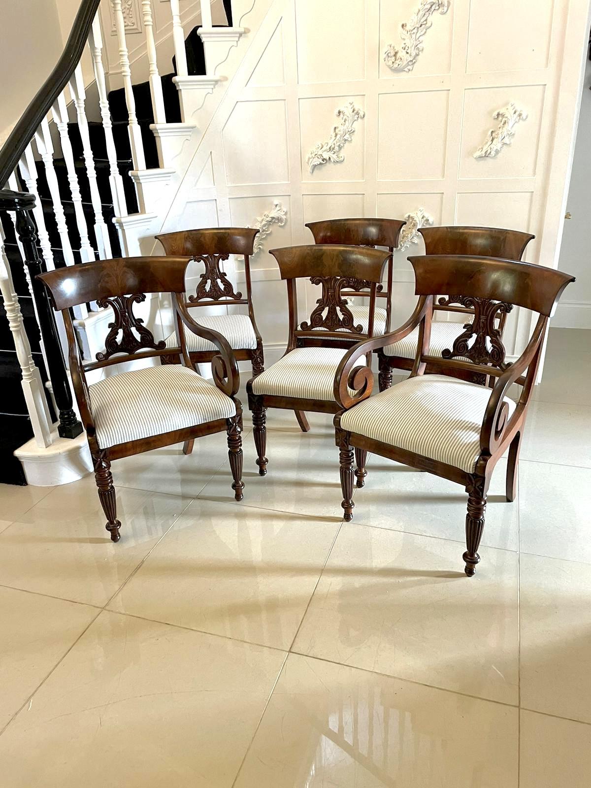 Outstanding Quality Set of 6 Antique Regency Carved Mahogany Dining Chairs