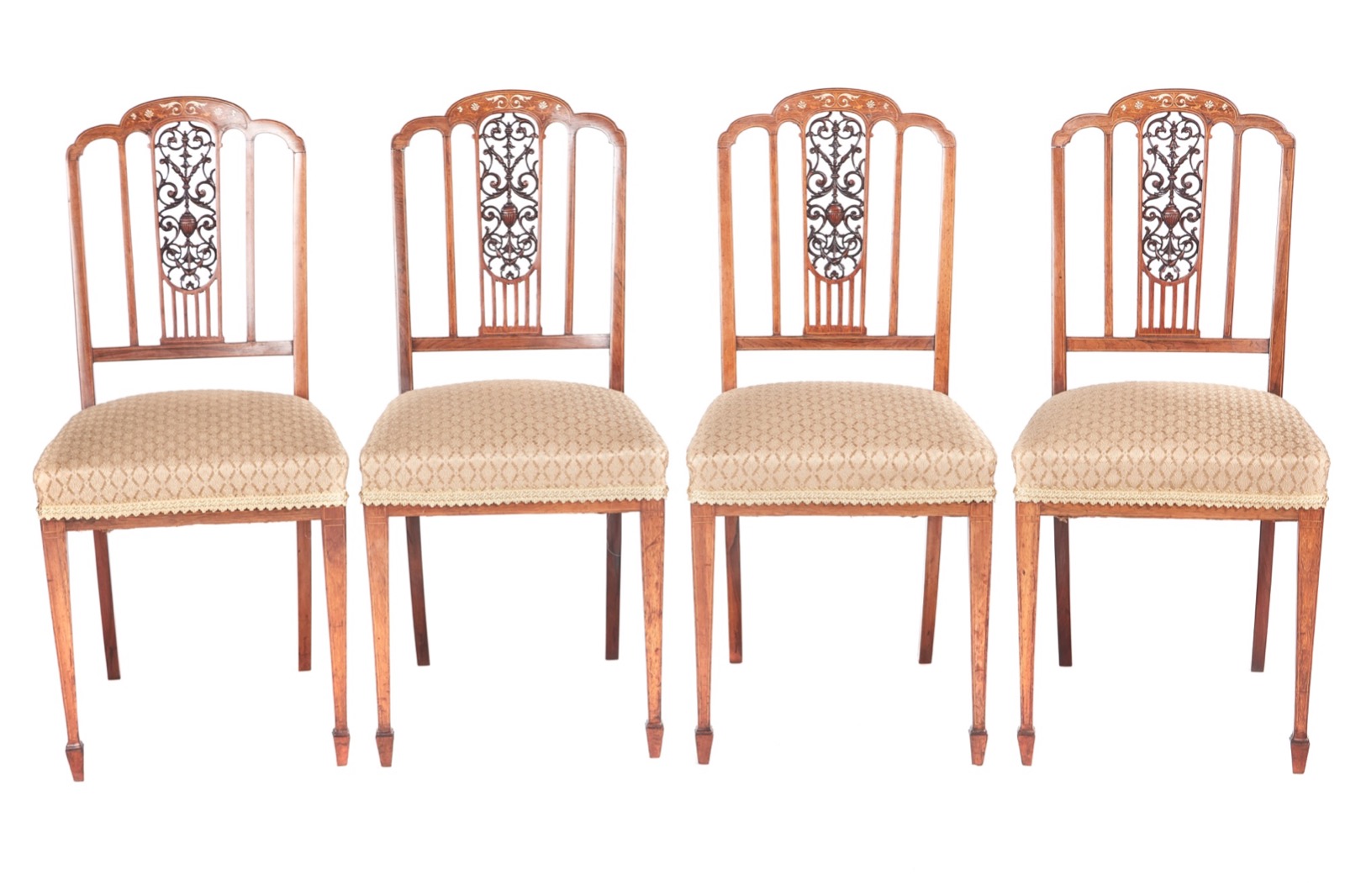 Outstanding Quality Set of Four Edwardian Inlaid Rosewood Dining Chairs
