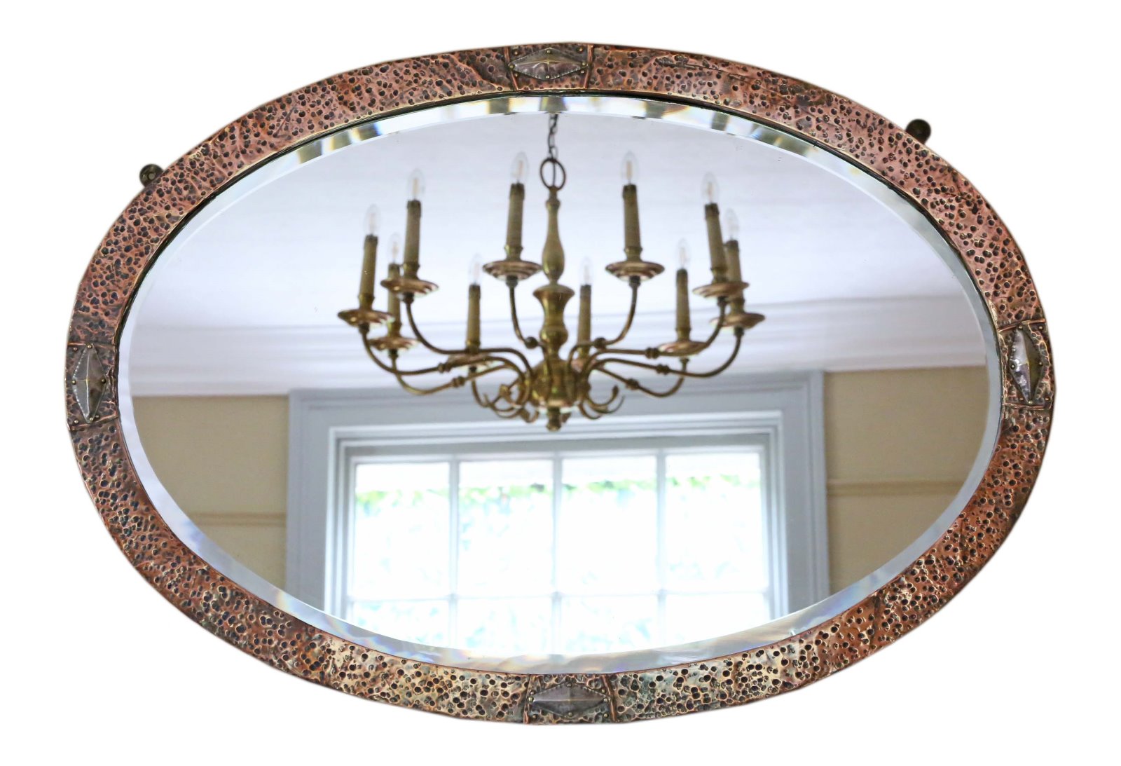 Oval Art Nouveau Copper & Brass Wall Overmantle Mirror c.1910 (1 of 6)