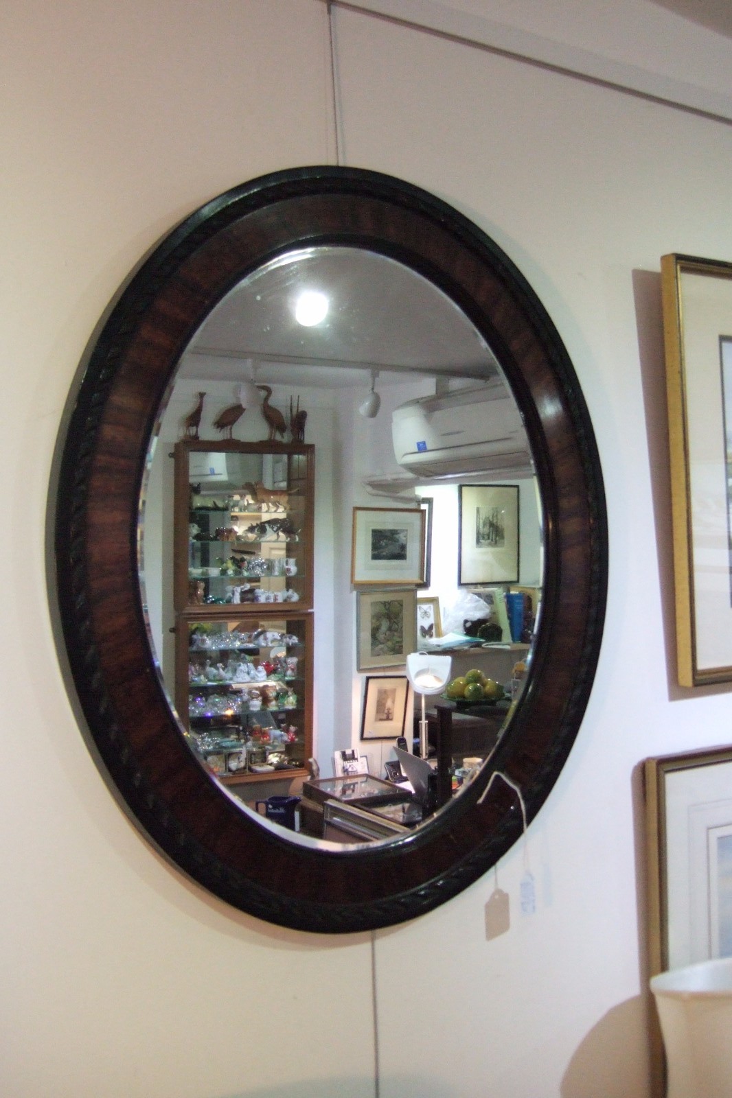 Oval Bevelled Mirror in Ebonised Mahogany Frame (1 of 1)