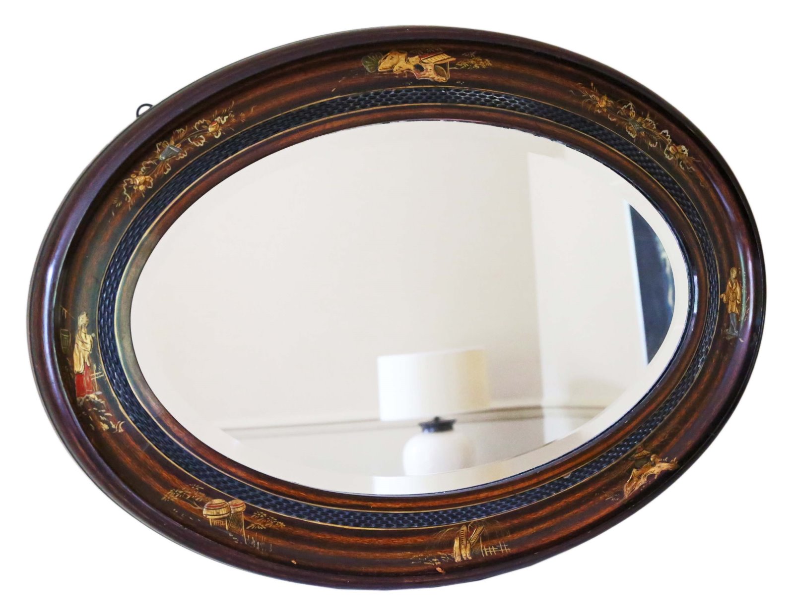 Oval Decorated Mahogany Chinoiserie Mirror c.1910-1920 (1 of 6)