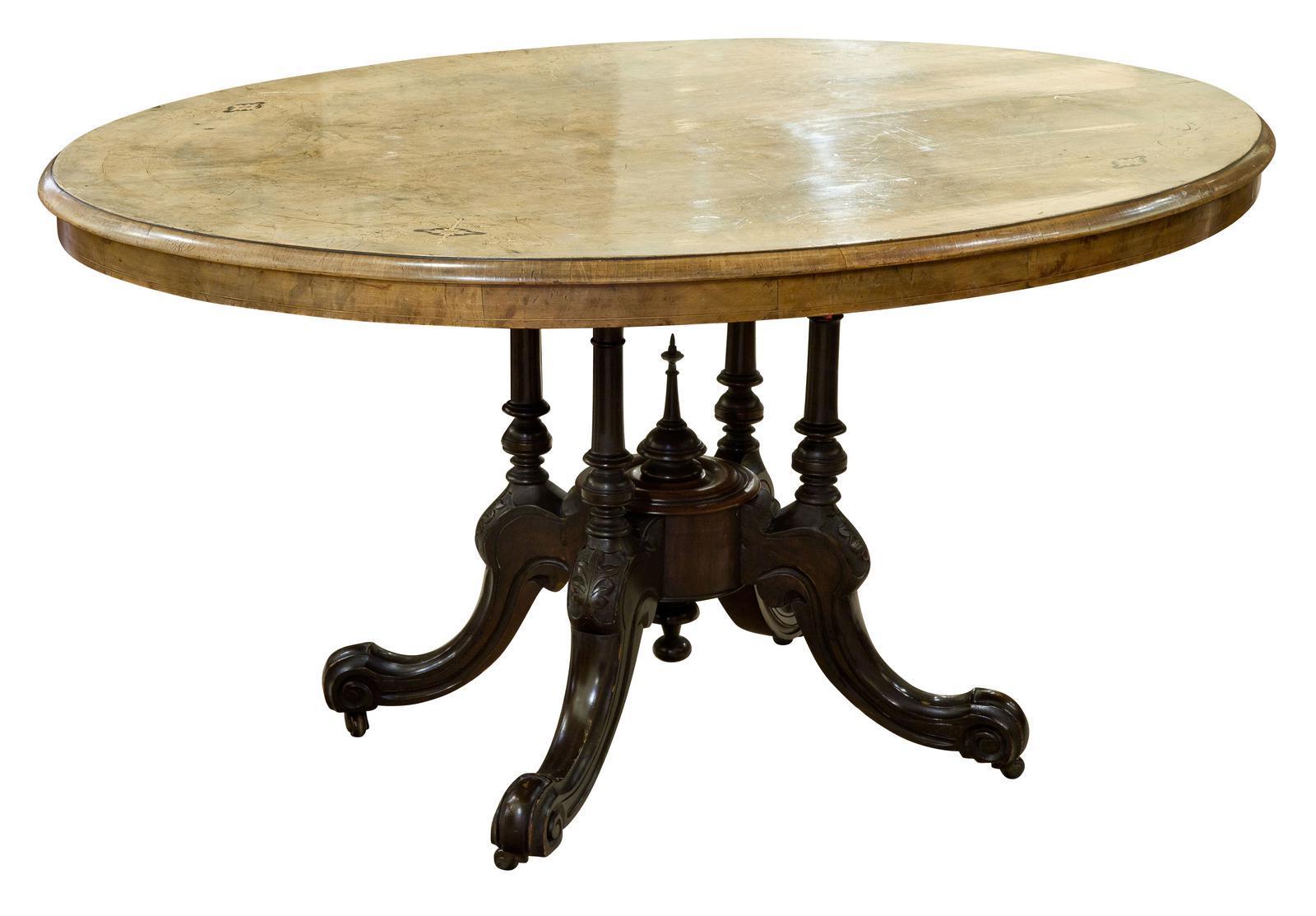 Oval Inlaid Walnut Loo Table on Quadruple Base