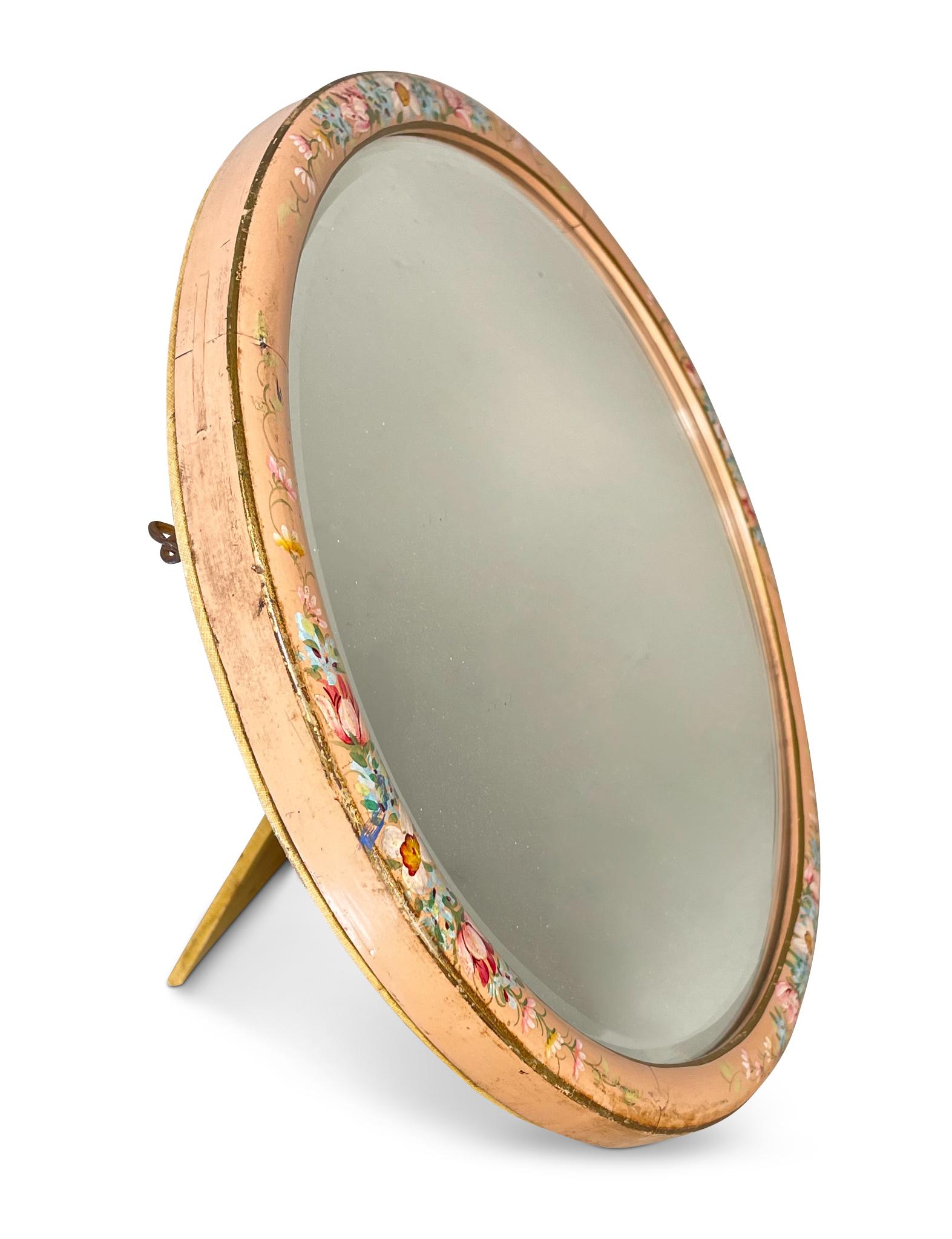 Oval Lacquered Dressing Table Mirror with Hand Painted Floral Decoration