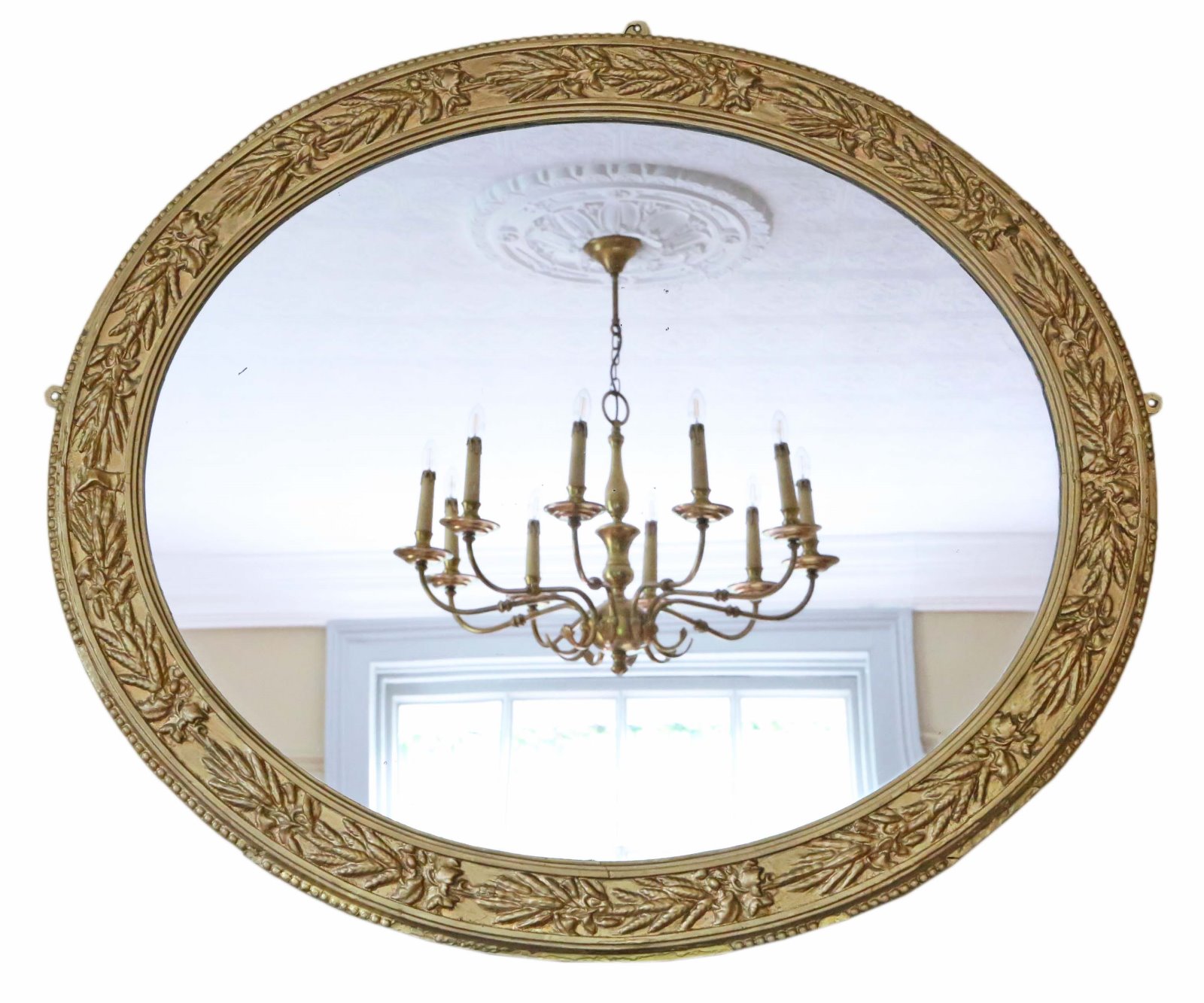 Oval Mid 19th Century Victorian Gilt Overmantle Wall Mirror