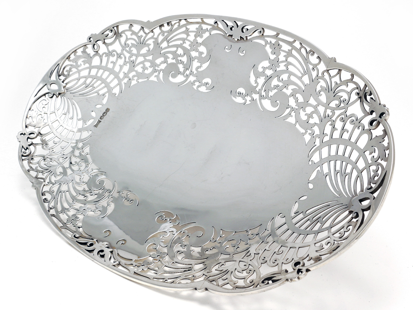 Oval Pierced Silver Dish by Walker & Hall C.1938