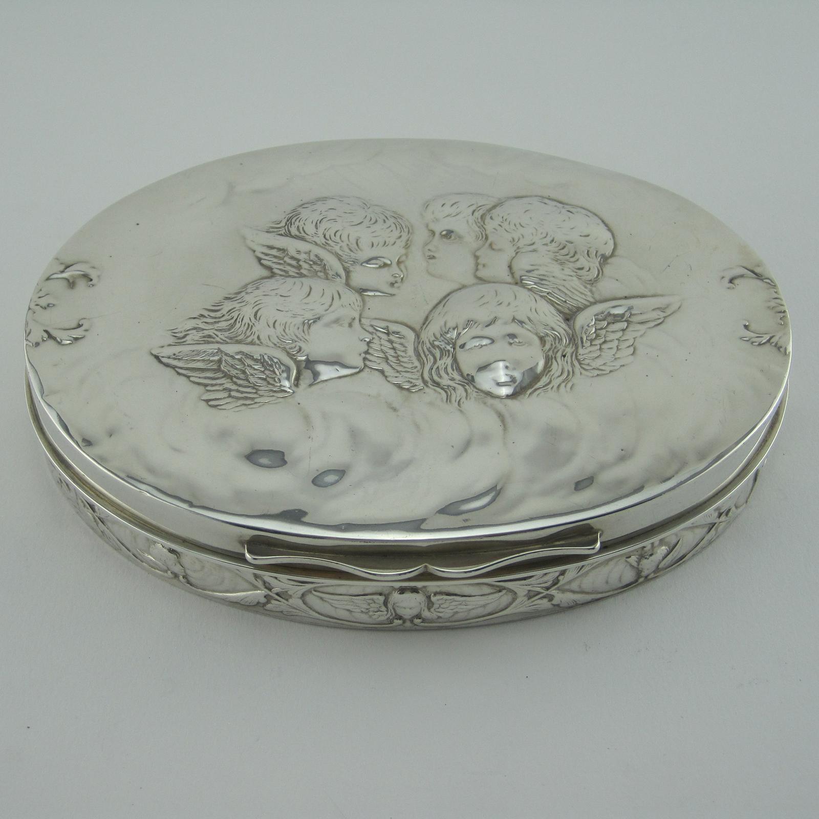 Oval Reynolds Angel Sterling Silver Trinket or Jewellery Box