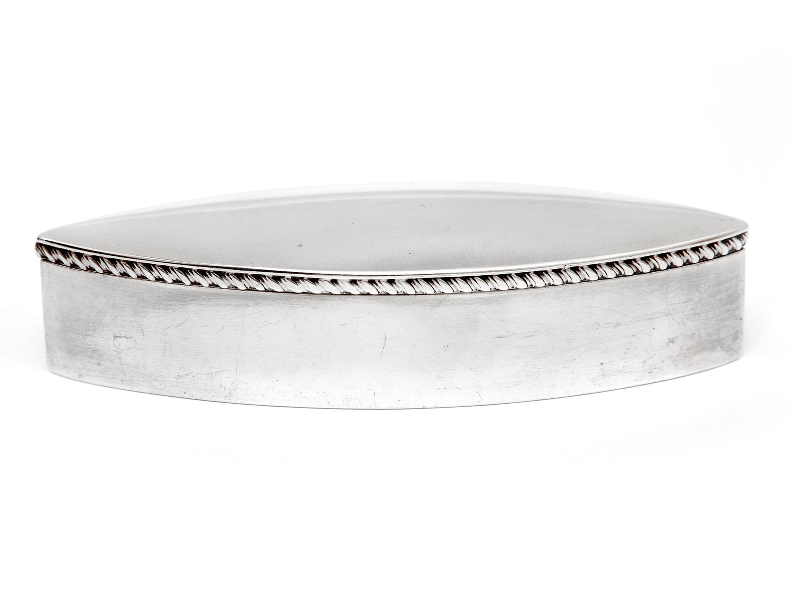 Oval Silver Trinket or Jewellery Box with a Hinged Lid and Gadroon Border