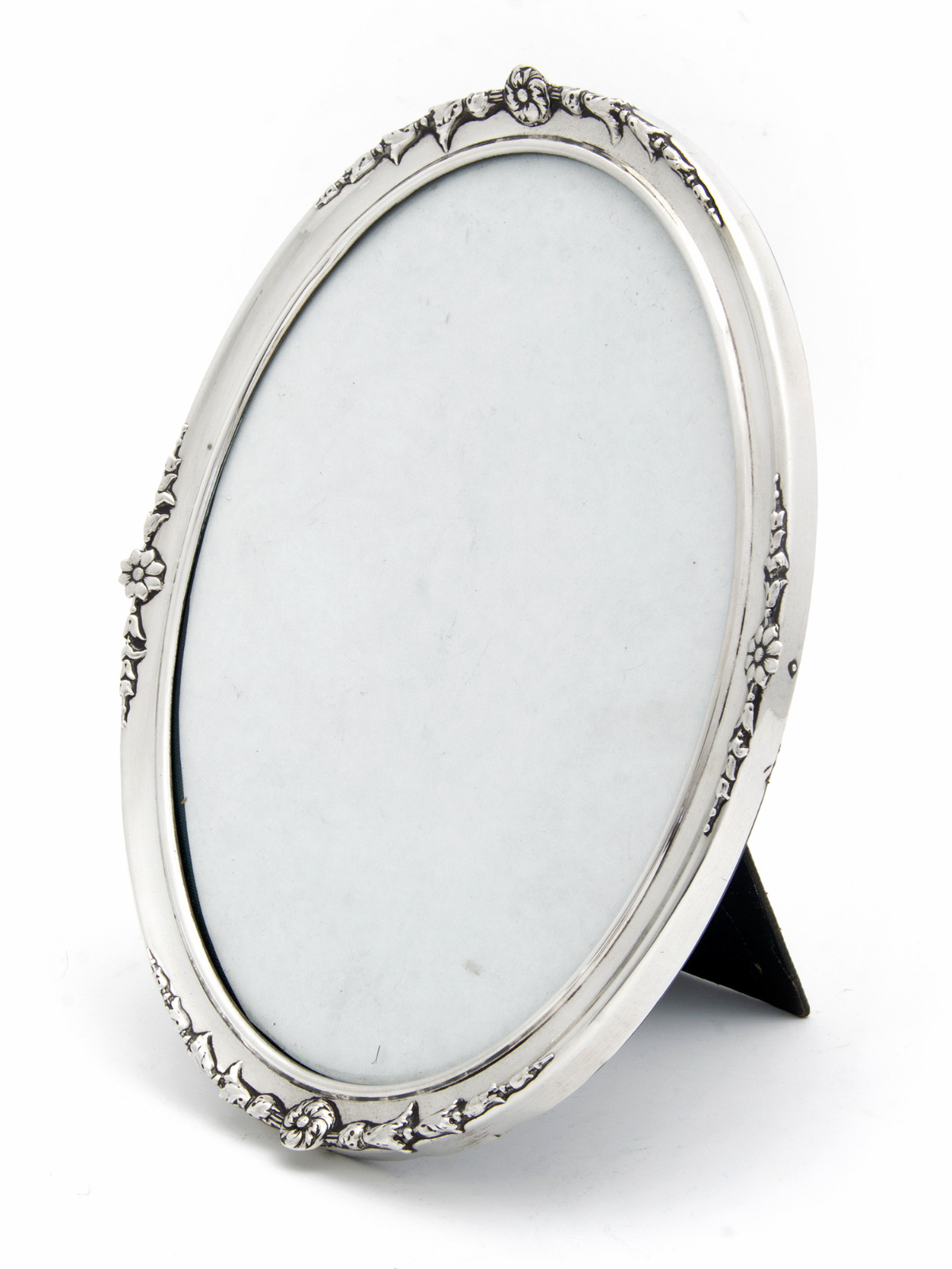 Oval Silver William Comyns Photo Frame with Original Leather Back (1 of 1)