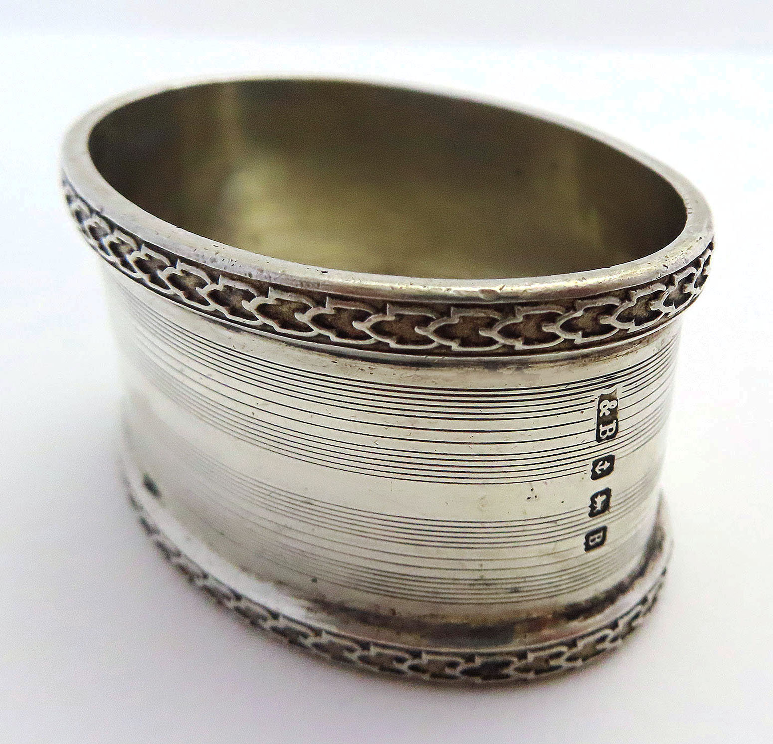 Oval Solid Sterling Silver Serviette Napkin Ring & Box. English Birmingham Hallmarked