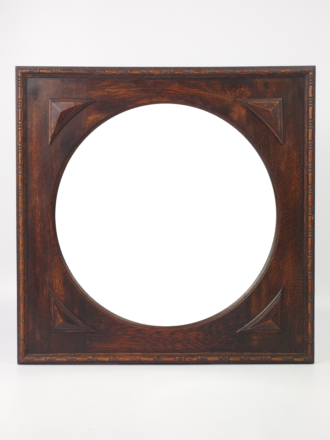 Oval Wall Mirror in Square Oak Frame c.1920 (1 of 1)