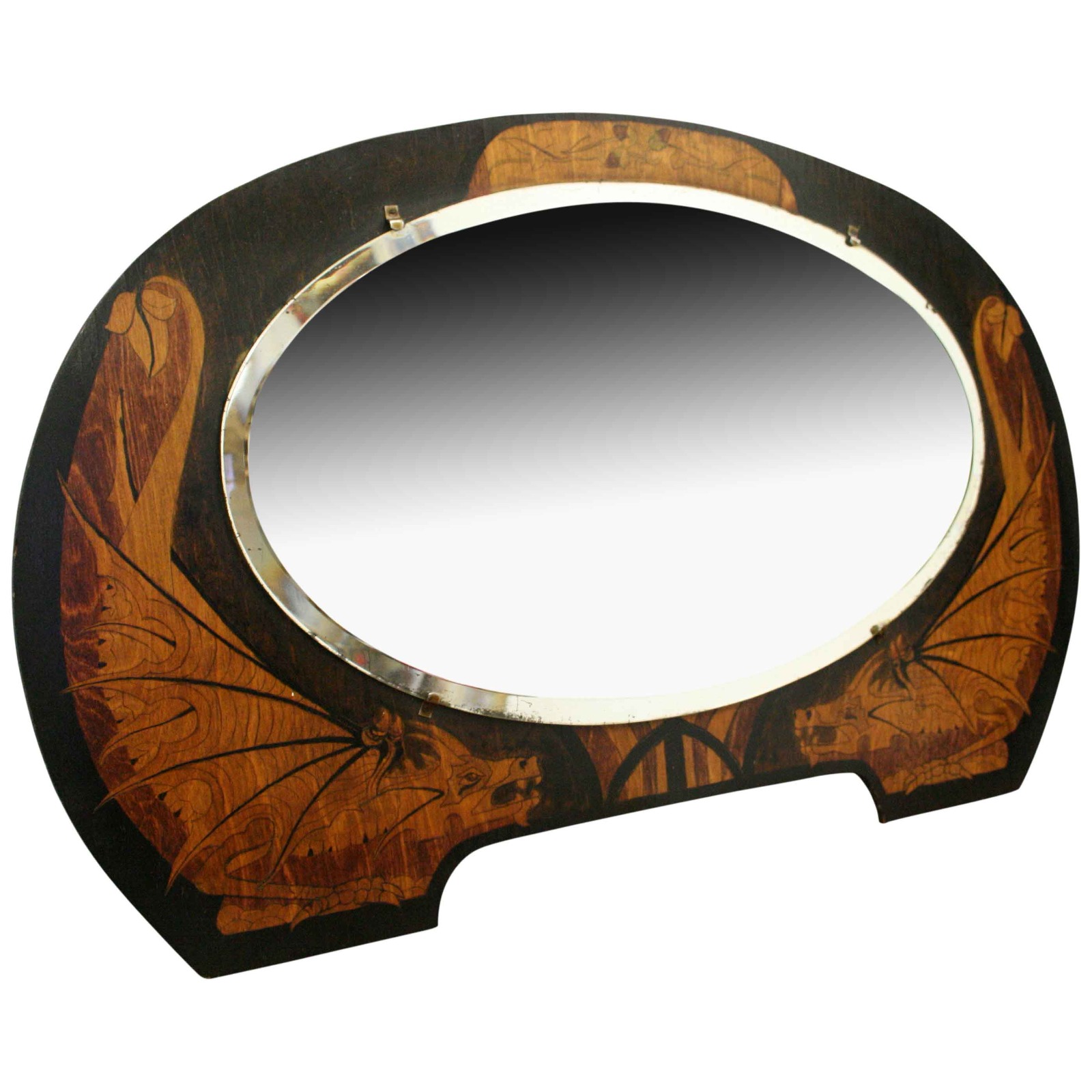 Oval Wall Mirror with Dragons Design c.1930
