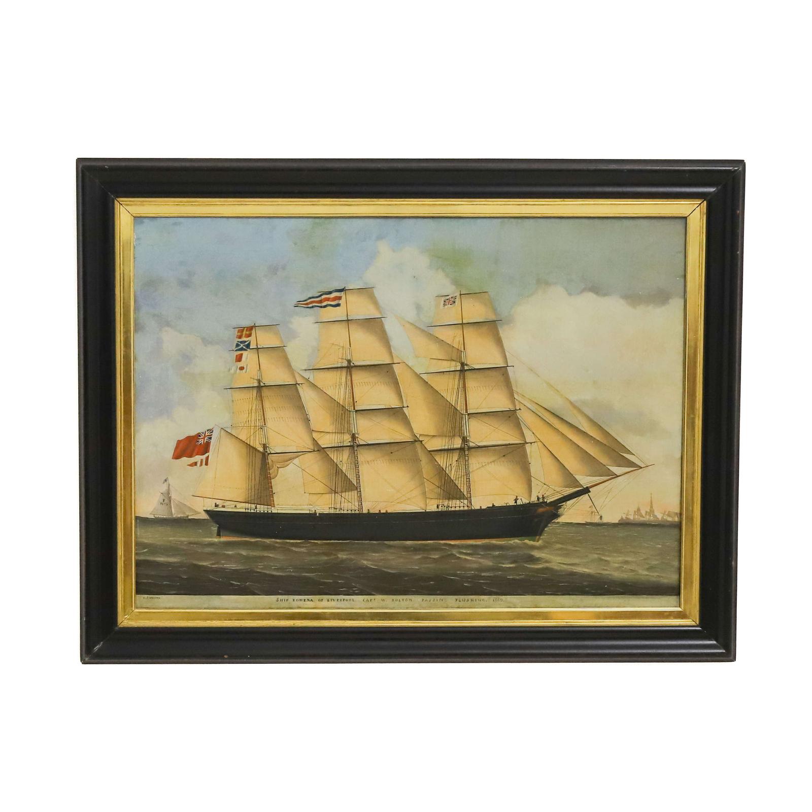 Overpainted Print of Ship Rowena of Liverpool - English 1890 (1 of 12)