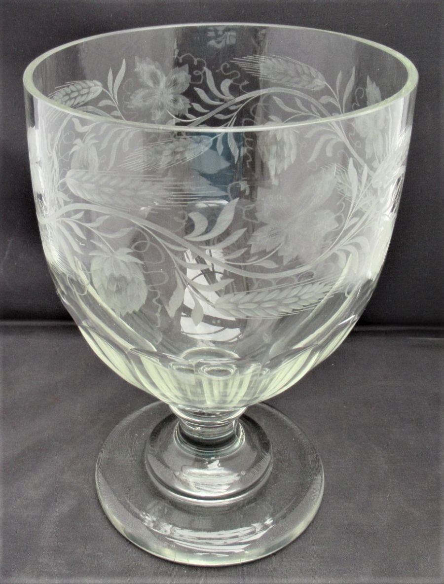 Oversize Glass Rummer or Beer Glass Engraved with Hops & Barley