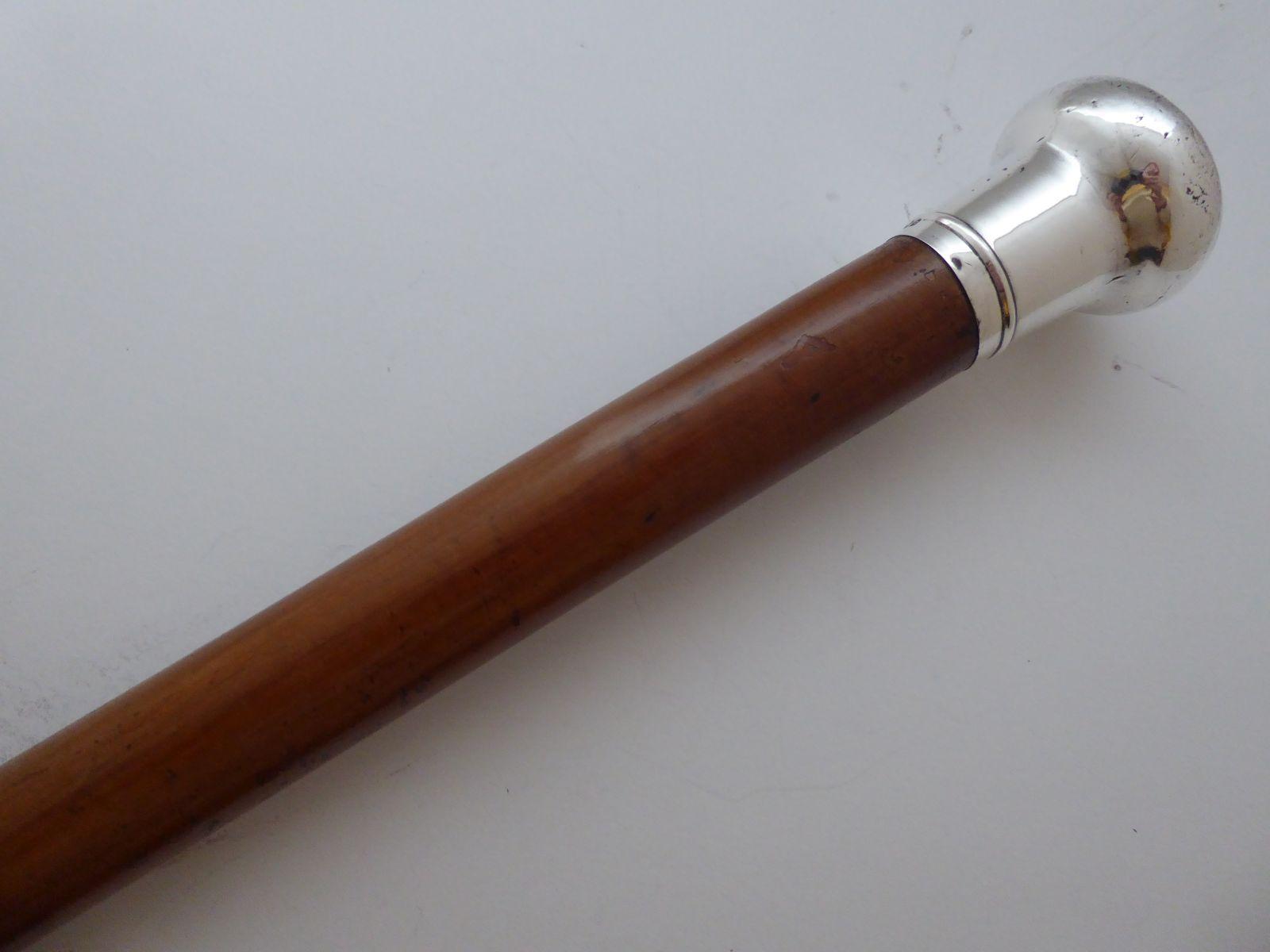 Oversize Walking Stick Cane 1918 Hallmarked Solid Silver Pommel Malacca Shaft