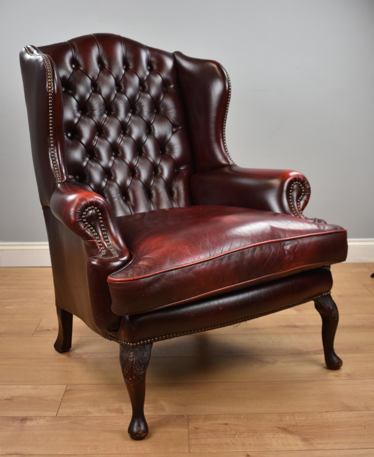 Ox Blood Red Leather Wing Back Armchair