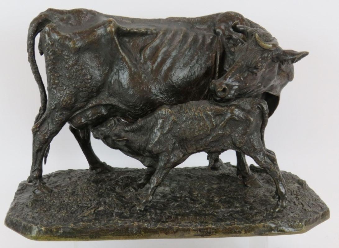 P J Mene 19th Century Bronze Sculpture of Cow & Calf
