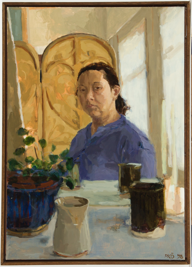 P. K.Ö - Large Framed 1998 Oil, Portrait of a Lady in Blue