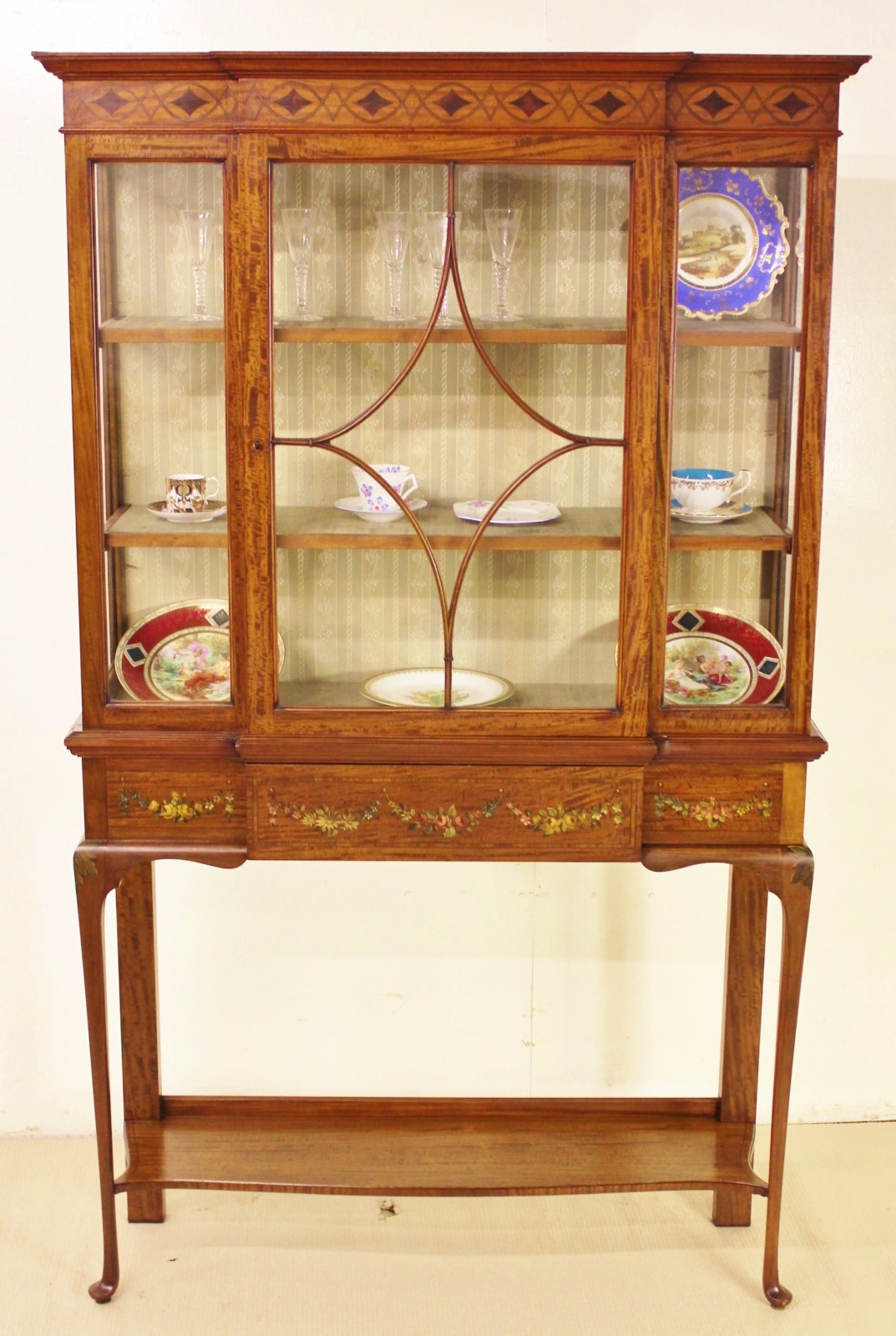 Painted and Inlaid Satinwood Display Cabinet (1 of 1)