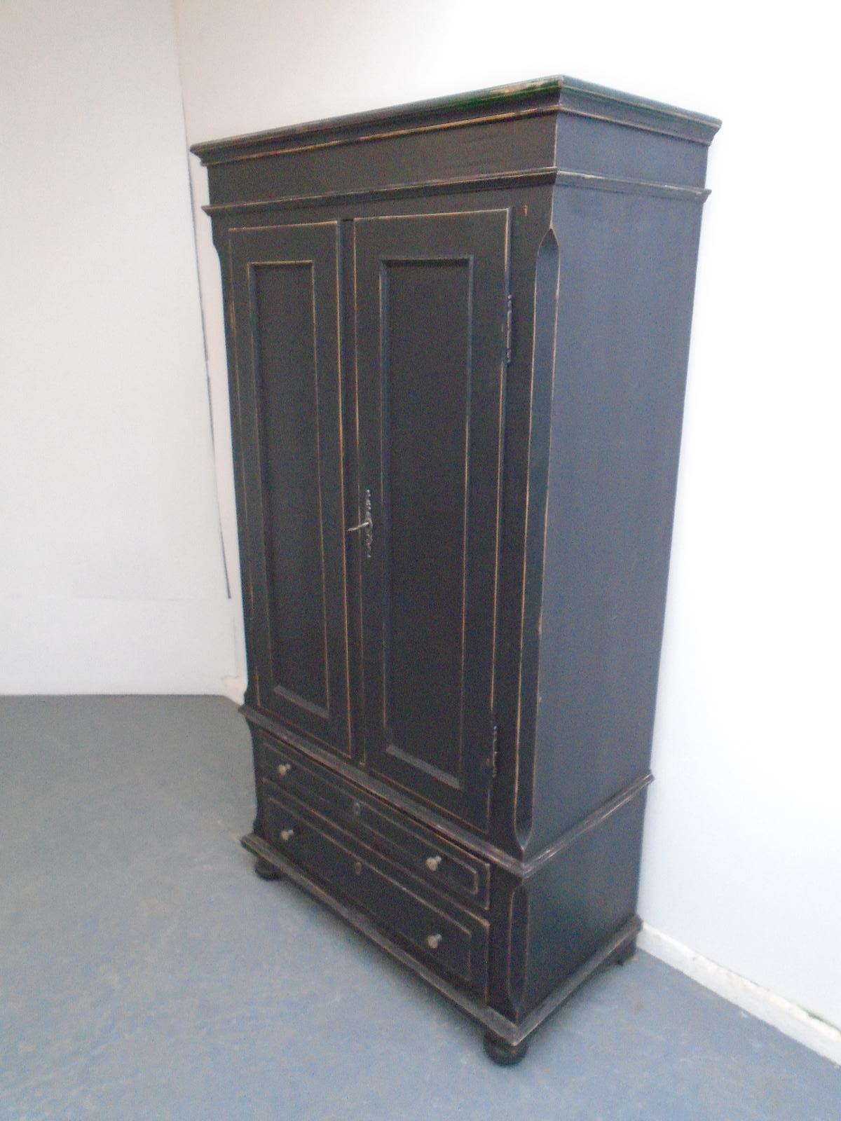 Painted Black 2 Door 2 Drawer Victorian Antique Pine Child / Hall Wardrobe
