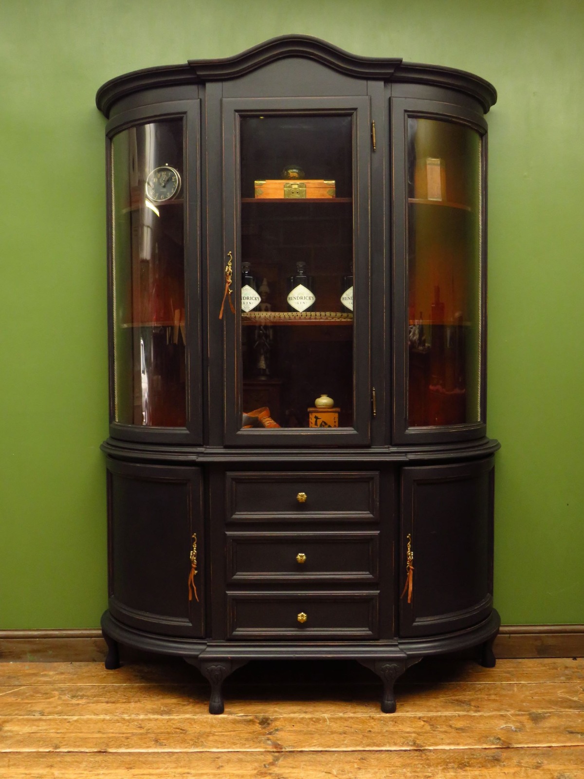 Painted Black Bow Fronted Glazed Display Cabinet Dresser