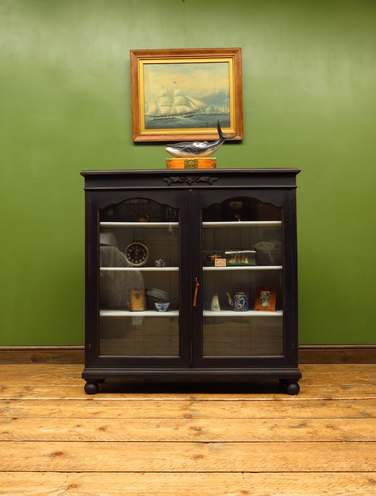 Painted Black Display Cabinet Bookcase, Adjustable Shelves, Lockable, Gothic