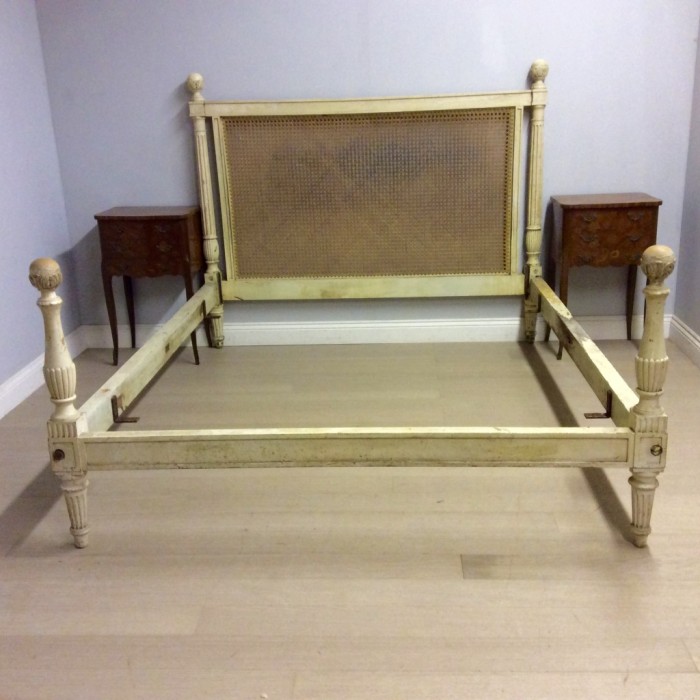 Painted Cane Low Ended Kingsize French Bed c.1900