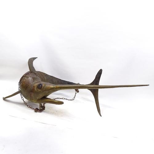 Painted & Gilded Metal Marlin, Possibly Wall-mounted Sign for a Fish Shop