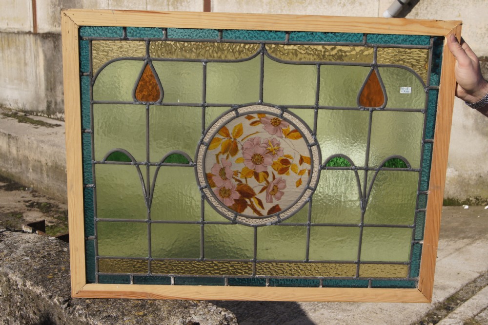 Painted & Leaded Glass Art Nouveau Window c.1900