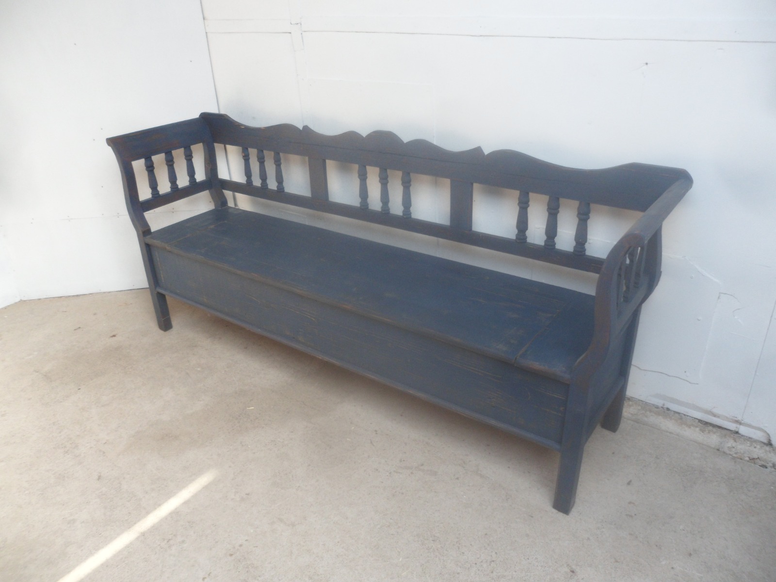 Painted Royal Blue 3/4 Seater Antique Pine Hall / Kitchen Box / Settle / Bench