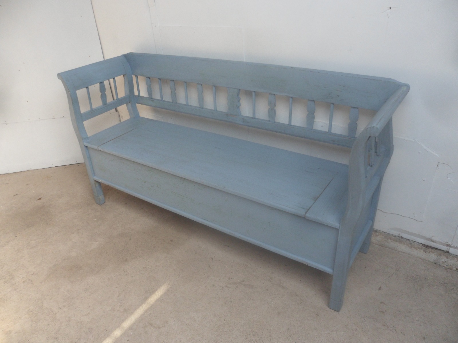 Painted Sky Blue 2/3 Seater Antique Pine Hall / Kitchen Box / Settle / Bench